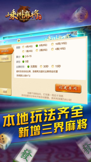 正宗的嵊州麻将特色玩法,熟人牌局,同城竞技。