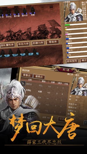梦回大唐,薛家三代尽忠烈 浴血疆场,名人堂内较高下 百余装备,上千搭配,订制专属队伍 经典战棋,丰富剧情,打破无脑玩法 天火同人,领略中华文化无穷魅力 《薛仁贵传奇》以中国古典小说《薛家将》为蓝本,用战棋的形式展现了初唐至武则天时代的战争风貌,配以传统的半文言文半白话文,让玩家在游戏中体验到中华传统文化的无限魅力