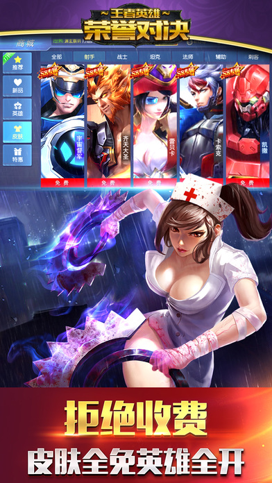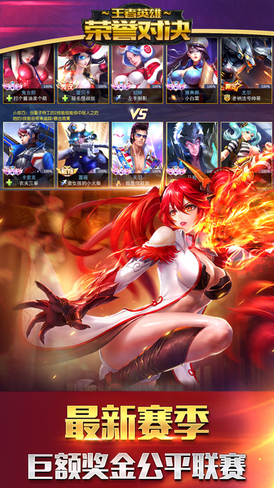 最新原创MOBA电竞手游!全球同服! 这是一款有毒,比农药毒的游戏!菜鸟别下! 这是一款秀操作,带节奏的游戏!坑神别来! 对面5条狗,有种你别走! 拒绝4V6,拒绝挂机狗! =====【游戏特色】===== 全球首款动态MOBA手游【王者英雄荣誉对决】震撼来袭!游戏内含多种模式,从快节奏的娱乐赛到激烈的高水准排位赛,无数特色英雄悉数登场,技能、装备、天赋、符文,经典元素应有尽有!对线补兵、野区GANK、推塔拿龙、天梯排位,熟悉玩法一网打尽!更有百位知名画师鼎力加盟,数十名明星声优倾情奉献,共同演绎全方位的视听盛宴。 ●新一代英雄团战手游,亿万玩家的手机MOBA战场,每日上演上万场激烈对线交锋。新赛季全民乱斗大联欢,超多奖励人人有份! ●引擎表现全面升级,带来前所未有的畅快手感。风骚走位,越塔强杀,空血反杀,战斗节奏全在掌控中,再次释放你的超神操作! ●前所未有的交互乐趣,和战队兄弟在中出生入死打天下。全新战队系统真人开团,五杀暴走,尽情屠戮。 ●风格迥异的特色英雄,每一个位都有着独一无二的背景故事和外形设计,都将由你号令,征战英雄时代,见证英雄的成长与战斗; ●最酣畅的全平台跨服热血多人对战。随时随地约战好友,更有1V1、3v3、5V5等多种对战模式,纵情享受移动竞技的极致快感。