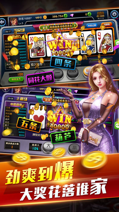 ATT翻牌机(也叫葫芦机、ATT连环炮、扑克机、金皇冠)是经典街机版游戏之一,游戏玩法来源于现实机台游戏,玩法简单,不需要掌握什么规则或者技术就可以尽情愉悦,因此在游戏厅和网络上十分流行和受欢迎。 ATT游戏选用一副扑克牌(54张),进入游戏后,系统初始发5张牌给玩家,玩家可以选择保留自己想要的任意数量的牌,然后将不牌换掉。换完牌后的5张牌如果能组成牌型则按牌型赔率进行结算。牌型四条,同花顺,大同花顺,五条可以从系统拉走一定比例彩金。 新增四花选五玩法,从一副去掉大小王的扑克牌中,由随机5张牌作为一线,按牌点和花色排列确定中奖与否和中奖奖级的游戏。 新增欢乐五张玩法,一把all in,看谁更强。 全新版本新增五星宏辉,经典草花机,单挑花色,谁是王者。 新增五张百人玩法,当庄玩法,大杀四方。