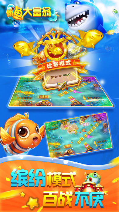 1.捕鱼大富翁,wan866正版捕鱼手游; 2.海量金币免费送,天天都能打; 3.特色玩法双炸,一扔掉千万金币; 4.万人联机竞技,绝无机器人杀分; 游戏特色 1.精彩赛事 拒绝孤独 【捕鱼精灵】、【激战海皇Boss】、【VIP猎妖】每周三大赛事,拒绝无聊与孤独 2.花式双炸 炸出首富 金币又没了?【智慧炸】、【开心炸】一炸千万暴富,讨巧又接地气的玩法,金币还会不够花吗? 3.史诗画面 传承经典 Q版3D画面,华丽鱼阵,全新场景,满足你的视觉要求! 4.特色运营 活动不断 捕鱼界里的运营常青树,天天有活动从不脱节,各种福利免费相赠,让您深知什么才是捕鱼服务!