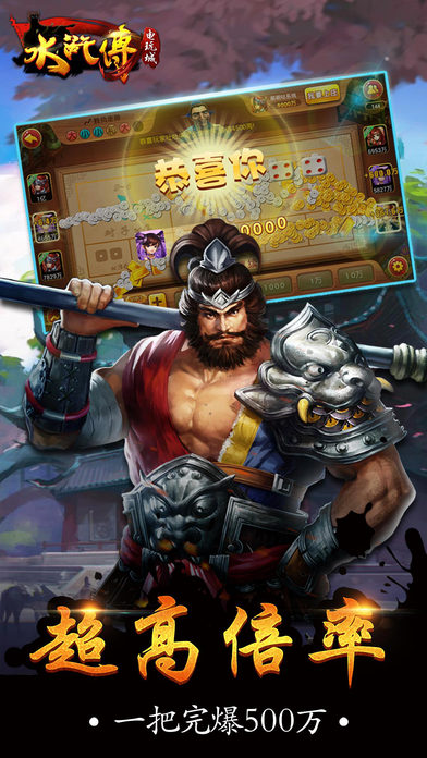 ◆2017年国内首款完美移植水浒传隆重上线!◆ --■动感界面■绝美画面,炫酷特效,如幻如真的古典配乐 --■极致体验■狂热!火爆!百万玩家共赴梁山!亿万奖池等你来拿! --无需注册,免费下载,立即开玩! 【游戏特色】 1、古代与现代的完美结合,史诗般的街机大战! 2、独特的左右靠边算法,每根线左右靠边都可算分! 3、中3个或3个以上“龙头”,即可进入小玛丽环节,疯狂派彩,根本停不下来! 4、逼真的3D人物,古色古风的动画,超级刺激的比倍游戏,只要敢搏,奖励翻番无上限! 5、完全街机话的数值,拼胆识,拼运气,绝无吃分的可能! 6、独特的银行功能,双重保护,再也不怕账号资金丢失! 7、百万人在线共夺奖池大奖!