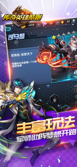 游戏简介 如果有机会变身为三国英雄?你最渴望变成关羽?张飞?还是赵云? 《传奇英雄酷跑》是一款致敬儿时英雄梦想的战斗酷跑手游,由泰尼游戏团队研发,游戏将全新的三国英雄形象和独特的变身战斗元素融入酷跑游戏中,邀你开启君臣一体,变身传奇英雄的追梦之旅。 在游戏中,玩家积攒英雄能量即可变身传奇英雄,释放华丽大招击退各路怪物。充满科技感的未来场景带给你一路上的新奇体验,同时还有丰富的随机道具带来无穷变化,众多神秘军师特技助你一路狂奔。 简单的操作,不简单的酷跑;趁青春出发,在奔跑中战斗! *********************************************************…
