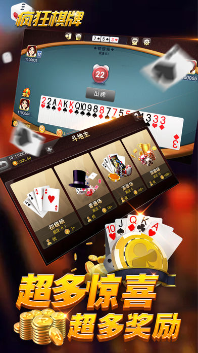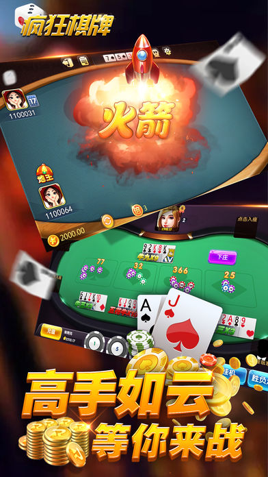 疯狂棋牌是一款经典的牌类游戏。游戏中需要发挥你的聪明才智与其他真人玩家斗智斗勇,争取最后的胜利。 游戏特色: >传统斗地主与街机斗地主完美结合。 >客户端超小,免费快速下载,新玩家无需注册直接开搞。 >画面精美,游戏运行中超级省电,超省流量,运行非常流畅。 >专业顶尖反作弊系统,让你玩的舒心。 >同时还有百人牛牛、飞禽走兽等更多精彩游戏等着你哦!