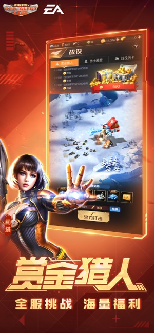 《红警OL》是国内唯一获得EA正版授权的红警游戏,是以经典PC游戏“红警”为基础开发的全新手游。游戏以创新的战争策略玩法、全面的现代军事战争、多维的自由科技辅助、实时的世界联盟混战四大特色为依托,迅速成为国内最流行的战争策略游戏。战斗号角已经吹响,不死老兵热血集结。 1、 EA授权,正版红警经典归来 经典元素全部保留,原版语音唤回记忆。顶级画面体验,全新战争策略,唯一正版红警手游《红警OL》,带你重回铁血岁月。 2、 战争策略,打造红警现代强国 采集世界资源,发展壮大基地。基地车、战车工厂、作战实验室、光棱塔、这是属于你的红警帝国! 3、 现代军事,海陆空立体化战斗 航空母舰、天启…