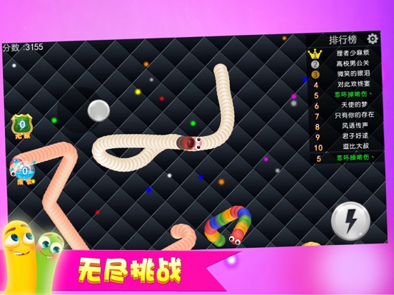 2017最热休闲竞技手游,还在等什么,赶快来玩! 【这个游戏有毒,根本停不下来】 这是一款令人停不下来的休闲竞技贪吃蛇手游!经典《贪食蛇》玩法全新进化,!还在玩别的游戏?那你就out啦!快来成为全球最长的蛇蛇吧! 游戏玩法: 1、不断吃掉小光点,成为世界最长蛇蛇! 2、只要让敌蛇的头头碰到你的身体,敌蛇就会死亡并且产生大量光点! 3、U型包围、小蛇狂奔、联盟围堵,逗趣好玩的策略战斗让你瞬间逆袭! 4、无尽模式or限时模式,和小伙伴们比比谁更长吧! 游戏特色: 【经典“贪吃蛇”玩法】 经典玩法重新演绎,吃光点长身体、围困敌人吃掉对方能量,比比谁吃得更快更长!我就是“贪吃”我要做最长的“贪吃蛇”! 【狂奔逆袭,小蛇翻身】 大蛇不再永远称霸天下啦,游戏里小蛇逆袭的震撼会让你欲罢不能!急速超车拦截蛇头、急停甩头抢道、画个圈圈诅咒你…这些都是战斗技巧! 【Q萌可爱,超多皮肤】 超Q萌清新画风让你爱不释手,源源不断的小蛇皮肤全部开放供君选择! 【“老少通吃”的游戏伙伴】 跨房间,跨楼层,跨年龄层,跨国界,在这款游戏里,你遇见谁都是有可能的喔。斗智斗勇吧,把朋友吃掉,把邻居吃掉,把陌生人吃掉……咦,怎么听起来有点邪恶呢,但真的很好玩啊!哈哈哈!