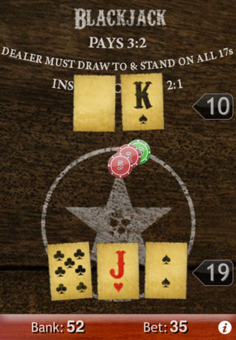 Blackjack 21 combines the words most popular card game with actual game play gestures, true-to-life animation and high resolution graphics. Tap the chips to place a bet, and just like in Vegas - swipe down to hit, double tap to double down and swipe across to stand. Choose from an ever expanding online library of custom card and table themes. Blackjack 21 will keep you busy for hours with the the ability to compete with other high rollers around the world, many interesting and challenging achievements, and extensive gameplay variations to set the game up just how you like it.
