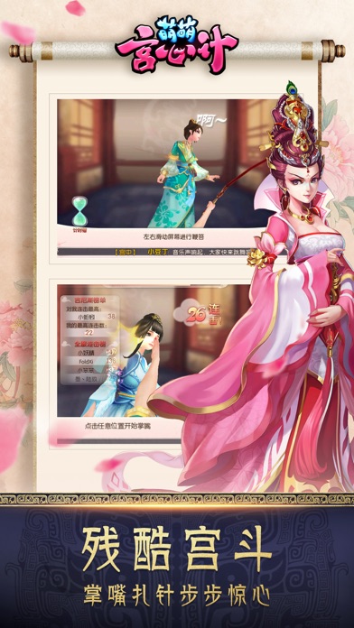 超唯美3D换装宫斗手游来袭!Q萌宫斗全新升级,打造前所未有的3D华美战国! 华衣霓裳,百变宫装随心搭配 要换就换的彻底!发饰、表情、服饰、鞋子随心配,3D高精密度模型,服饰细节精致考究。更有华服大赛、时装传记等丰富玩法,让你秀出最美的自己! 洞房花烛,喜得麟儿望子成龙 结发为夫妻,恩爱两不疑。浪漫结婚系统让有情人终成眷属。只是在一起当然还不够,和ta一起养育爱情的结晶吧!皇子皇女亲自培养,琴棋书画、十八般武艺任你栽培,母凭子贵享受一世荣华! 原味剧情,多线结局任你选择 主线剧情中包含大量多选项剧情,需要你做出自己的抉择,主角的性格、命运由你掌控! 残酷宫斗,掌嘴扎针步步惊心 宫斗玩法丰富有趣,不只有掌嘴诅咒那么简单噢!拉拢权贵、收买人心更是必不可少的生存之道。成王封后,锦衣玉食,他人的荣宠兴衰,尽在你一念之间! 梦回战国,殿宇楼阁恢弘重现 亭台楼阁、水榭华庭,丰富精美的场景刻画,完美还原战国的秀丽江山,处处彰显良心制作。还可举办盛大的筵席,效仿文人雅客们吟诗作对、曲水流觞,感受一下战国的文人风骨岂不快哉? 自由养成,剧中人物化身侍从 还原剧中百位经典人物,共同组成丰富的随从系统,大大满足玩家的收集欲望。更能进一步培养随从,在风云莫测的战国后宫培植自己的强大势力,争霸一方。 欢迎加入官方QQ群:538395484,进群就送大礼包 关注官方微信公众号:lkmiyuezhuan,掌握新鲜一手资讯