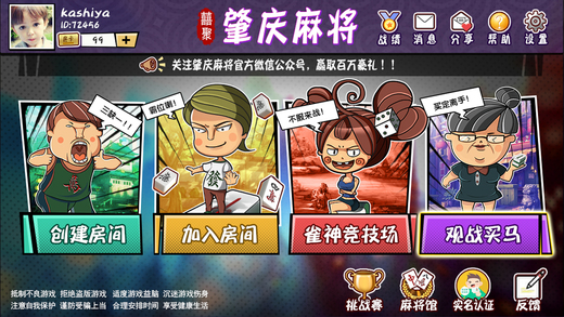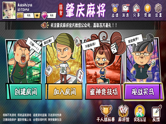 囍聚肇庆麻将,是肇庆地区最正宗的麻将游戏。 【玩法】 1、开房模式:轻松约局,一人使用房卡,亲朋好友一起玩麻将! 2、雀神竞技场:世界匹配对局赢房卡,炫耀你的连胜次数! 3、千人挑战赛:千人同时匹配对局,谁会是最后的大咖,大奖等你领走!