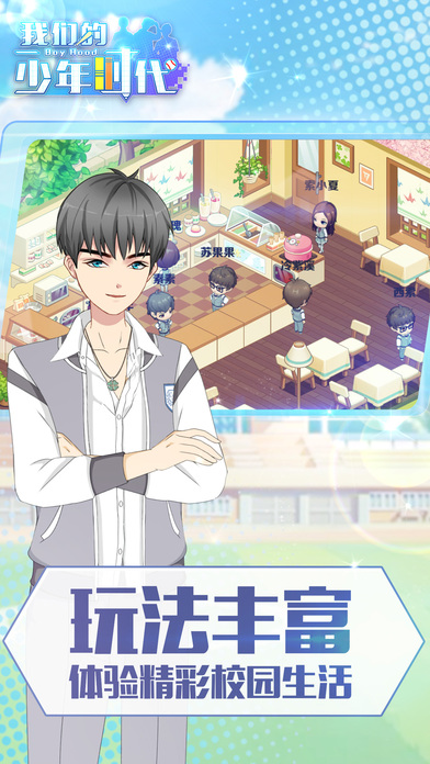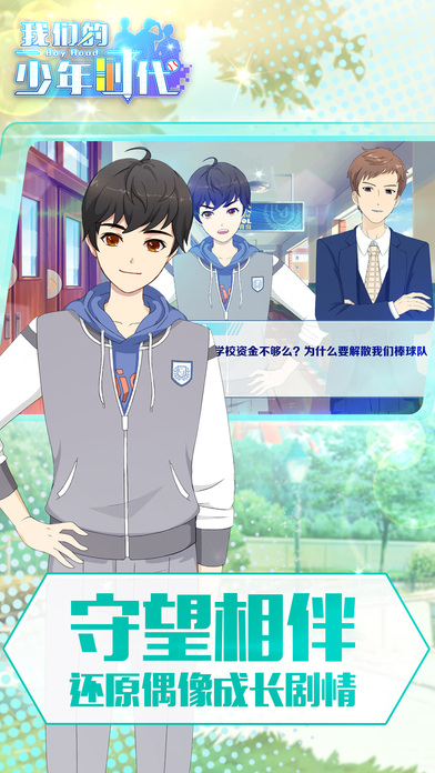 【游戏介绍】 “一生只有一次的青春,我们用力呼吸,用力做梦,这就是我们的少年时代!” 《我们的少年时代》是乐逗游戏研发的校园青春人气偶像养成手游。官方正版授权,完美还原电视剧情。玩家以偶像同学的身份进入游戏,与偶像零距离接触,探索校园神秘事件,解锁偶像专属剧情。精美偶像立绘,清新校园场景,热血跑圈运动,经营甜点社团,装饰个性公寓,培养偶像情感等丰富多彩的玩法,为你带来全新的偶像养成体验! 【游戏特色】 -正版授权 完美还原电视剧情 《我们的少年时代》由电视剧官方正版授权!100%还原电视剧情,完美呈现,带你进入陪伴偶像成长的校园青春励志故事。 -亲密互动 与偶像零距离接触 与偶像实时聊天,帮助偶像达成心愿。手指触摸偶像,培养偶像好感度。拜访偶像公寓,实现你与偶像亲密的零距离接触。 -神秘事件 探索偶像特殊剧情 探索校园,拜访公寓,偶像聊天,好感提高,开启神秘事件,解锁特殊剧情,令你获得惊喜不断的情感体验。 -玩法丰富 体验精彩校园生活 制作甜点,赠送偶像。获得家具,装饰公寓。跑圈运动,棒球训练,课程学习等等,让你体验精彩纷呈的校园生活玩法。 【关注我们】 官方网站:http://tf.uu.cc/ 官方微博:@我们的少年时代手游 官方微信:我们的少年时代手游 官方社区:http://bbs.uu.cc/forum-575-1.html
