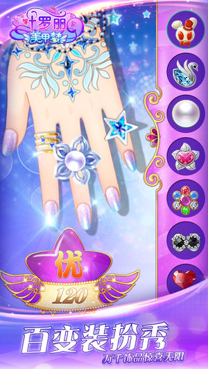叶罗丽美甲梦——万千饰品仙境奇缘 游戏介绍: 叶罗丽精灵梦官方正版授权 公主少女魔法美甲奇遇 绝美套装,百变搭配!色彩斑斓的指甲油、华丽典雅的戒指,繁复绮丽的袖饰……方寸之间,精心装点只属于你的手中世界。仙子们都被邪恶的曼多拉女王变成了没有生命的娃娃,只有真心爱护她们,与她们缔结契约才能让叶罗丽仙子重获生命。你有的不仅是丰富多彩的美甲装饰,更是与娃娃们一起相伴成长的回忆! 【仙境之旅 场景再现】 充满阳光的精英小学、古色古香的娃娃店、云雾缥缈的叶罗丽仙境、波光粼粼的净水湖……精美场景,高度还原,叶罗丽仙子带你身临其境,走进动画中的神秘世界。 【缔结契约 娃娃相伴】 被曼多拉女王变成娃娃…