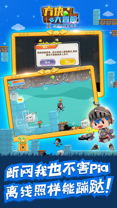 这是一个奇异的方形世界,也是你所体验过最欢脱的休闲游戏! 还记得童年马里奥跳跃的乐趣吗?我们的游戏向经典致敬,将跳跃进行到底! 方块勇士会不停的跳跃向前,冰块、履带、蹦蹦砖,各式各样的方块,它们可能是帮手也可能是致命的敌人,想要过关就要利用周围一切道具(弹簧、小船、爆炸块……)。 如果没有网络,离线也一样能闹腾,根本没有什么能阻挡你的跳跃; 如果你有好想法,开放的自由编辑功能,可以最大可能地满足你的脑洞,也请等待来自所有玩家的挑战; 如果以往横冲直撞的闯关让你感到单调,这里烧脑的解谜及欢脱蹦跳的节奏,能让你的身体及大脑同时在路上,如此欢乐的操作,才是游戏的真谛。 来吧,勇士们! 听说,你正在寻找欢乐, 听说,你在寻找我? 【联系我们】 官网地址:http://fk.yingxiong.com/ 官方微信:方块大冒险 官方微博:http://weibo.com/u/6126895954?refer_flag=1001030101_ 官方QQ群:458469653 客服电话:4009393333