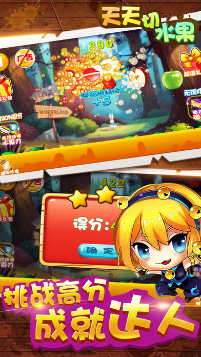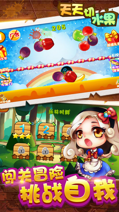 天天切水果是一款别具风格的切水果系列游戏,操作流畅。随时随地,想切就切。手起刀落间 ,果汁四溅!在这个有趣的游戏中,你只需伸出你的手指便可享受乐趣。您需要将扔在空气中 的苹果,香蕉,猕猴桃等水果切片,在规定的时间内获得更高的分值。 但要小心,不要切到那 些突然出现的炸弹。游戏玩法非常简单,画面精美可爱,游戏为得分模式,不漏掉一个水果得 分会越高噢,赶快来挑战一翻吧。 游戏特色 清新脱俗的简美风格体验,独具特色的切割效果设计! 手指在屏幕上轻轻滑动,切割水果!玩家动作速度要快、准,不能切炸弹! 惊爆眼球的水果切割特效,将给你前所未有的视听新体验! 惊险刺激的战斗挑战你的操作极限 丰富的关卡挑战让你体验不一样的水果盛宴