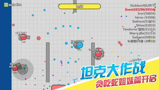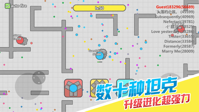 经典坦克大战新玩法! 精彩刺激,坦克大战还能这样玩! 超越球球大作战,欢乐球吃球的乐趣! 数十种进化形态,多种能力强化 人性化操作,左右手,随意切换,更有自动开火模式解放双手! 数十种坦克进化,个性十足,战斗力爆表。 精彩刺激,一旦上手,根本停不下来! 魔性程度堪比球球,贪吃蛇哦~ 快来下载,体验!成为最强坦克!