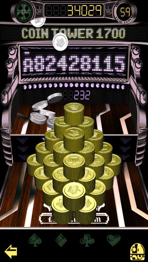 REAL 3D Coin Game, easy playing, Tap or Flick! Super physics engine inside! Multi-touch is a good way to drop a lot of coins at a time. Drop coins by Tap aiming for the arrow lights in order to spin the reels. The game has 9 reels and the more numbers you match with, the more you win. - Match…