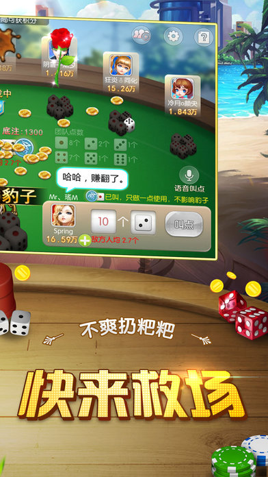 2017倾力巨献,经典大话骰手游——《天天摇点》强势来袭! 【游戏简介】 多人对局,吹牛摇骰,全靠演技! 巨额奖池,轻松一掷,通杀全场! 排位赛竞夺骰王之王,赢取专属头像框! 全新团队模式,趣味升级,玩出新花样! 送玫瑰,扔粑粑,偷金豆,抢金币……结识好友,报复仇敌,最真实刺激的交友互动,激情无限! 真人配音,游戏时身临现场;骰盅皮肤,彰显独特个性! 方言随心切换,倍感亲切;搞怪互动,玩法趣味多多! 寻找默契搭档,斗运气,猜骰子,说大话,欢乐无限! 一起来摇吧!