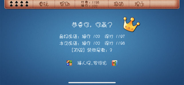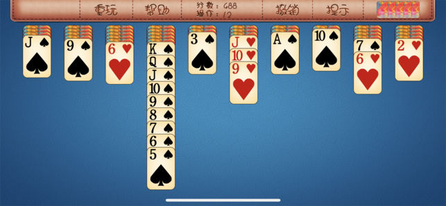 电脑上的蜘蛛纸牌你是不是已经百玩不厌呢?现在它登陆iPhone了,上下班途中也可以用它打发时间了~~ 蜘蛛纸牌, 多么熟悉的画面, 在那个没有网络游戏横行的年代, 这款经典纸牌游戏给我们带来了多少欢乐时光, 可以说已到了为卿独醉, 为卿狂呐~~哈哈, 众所周知该游戏很难获胜(不要试图以单色的难度来寻求自己的心理安慰哦~那可是给小盆友玩的啊~~呵呵), 但这似乎激发了一些玩家极大的热情。正因为胜局难得, 所以经过一番苦战后迎来的胜利, 才更令您有成就感。, 本作特点: 1,完全复刻电脑版本 2,超爽的操控 3,支持Game Center 游戏规则: 游戏的目标是以最少的移动次数将八副牌整理…