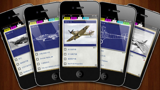 如果你喜欢飞机,那么这个程序就是为你设计的! 学习识别各个时代(从第一次世界大战到现代)最常见的直升机、战斗机、轰炸机和其他飞机。 进行测验,探索按时代分类、带有照片的飞机,还有链接可获得额外信息、更多的照片和网上资源 使用飞机蓝图的三个视角(正面,侧面,底部)之一或全部,测试你的的识别技能。 你从五架飞机开始进行测验,完成一个级别后再解锁五架新的飞机。你必须正确识别一个级别中所有五架飞机才能进入下一个级别。答错三次就算失败。你可以使用两张王牌、查看飞机照片或从四个可能的答案中去掉两个。
