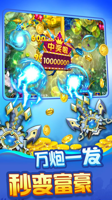 【捕鱼简介1】 渔友陪你捕鱼,万炮齐发嗨翻全场 内容提要: 1、真人在线联网捕鱼,渔友就在身边 2、十炮、百炮、千包、万炮,疯狂开炮 3、奖金鱼、倍率更高,海量金币等你来 4、鱼儿拟人化的音效,不一样的捕鱼体验 游戏特色 1、厌烦了一个人的捕鱼,厌烦了一个人的孤独,捕鱼达人电竞版来了!真实玩家多人在线,渔友就在身边。黄金鱼,抢到就是你的! 2、多种炮台规格,十炮、百炮、千包、万炮,疯狂开炮,万炮齐发。炮台基数越高,捕鱼赢得金币越多,秒变土豪,完美逆袭就是现在! 3、稀有的奖金鱼,超高倍率,打中了就找到了中大奖的刺激,想挣金币就开炮吧! 4、绚丽的画面,搞笑的鱼儿对话,炫酷的技能,击中大鱼就能感受到爆屏的刺激! 【捕鱼简介2】 真人捕鱼,金币掉不停,真正的原味街机游戏厅捕鱼。是捕鱼老司机就大胆秀出来,展现不一样的捕鱼风采。 游戏特色 1、真实玩家多人在线,渔友就在身边。黄金鱼,抢到就是你的! 2、十炮、百炮、千包、万炮,万炮齐发。秒变土豪,完美逆袭就是现在! 3、稀有的奖金鱼,超高倍率,打中了就找到了中大奖的刺激,想挣金币就开炮吧! 4、绚丽的画面,搞笑的鱼儿对话,炫酷的技能,击中大鱼就能感受到爆屏的刺激!