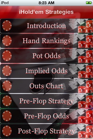 你需要一个严重的德州扑克策略的应用程序,以帮助在游戏中提高自己的技能? iHold'emStrategy讨论所需的核心战略,成为一个成功的扑克玩家。同时,它提供了你需要做出明智的决策,在现场扑克游戏的工具。 坚实的理论结合实际的建议,战略部分侧重于两大主题:(1)了解扑克背后的数学(2)利用弱点,在你的对手的发挥。具体议题包括: - 池赔率 隐含赔率/反向隐含赔率 - 起手选择 前触发器提高 利用位置 - 继续下注唬人 调整对手的发挥风格 播放欺骗性 “工具”部分包括以下内容: 常见的触发器赔率图表。什么是假摔冲水抽奖的几率?行程?两对呢?没什么? 启动双手图表 超时图表。 8翻牌的细节,什么是改善你的手翻或河流的可能性? 手排名 普通的翻牌前手的对决。如何针对underpair的AK公平吗?这里列出最常见的对决时,不要浪费时间赔率计算器。 无论你目前的技能水平,iHold'emStrategy保证让你更好的扑克玩家。虽然总是有运气在扑克,请记住,从长远来看,策略与最佳球员总是能赢得。