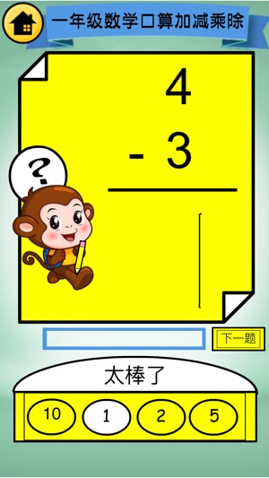 适合5岁-10岁的儿童学习数学使用。 共100000题的口算作业与练习,学习100以内加法减法、100以内乘法除法; 与小学数学一年级课本课程同步,可作为课后作业的一课一练使用。 初级:个位数速算 高级:多位数速算 【联系我们】 ○ 建议反馈: junlas0555@gmail.com ◆ 数数猴教育,致力于为4至12岁儿童提供最优秀的互联网教育软件! ———————————————————————————————————————————————————————————————————— 数数猴由名师编写、精选、解析,根据孩子兴趣点,根据常考知识点匹配内容, 进行长期的思维训练…
