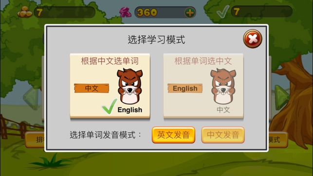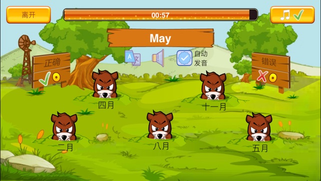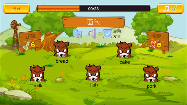 这是一款帮助儿童和小朋友学英语背单词的学习软件。 以有趣的打地鼠小游戏,让小朋友们在充满趣味的环境中学习实用的英语常用单词。 三十种不同的分类单词(动物、水果、蔬菜、食物、数词......),让学习更有针对性。 丰富的双语学习模式,不仅可以通过中文找英文单词,也可以通过英文单词来找中文译文。中英互译,提高记忆。 【游戏玩法】 1. 选择想要练习的单词分类; 2. 根据译文或单词,点击相应的地鼠; 3. 打开声音,通过发音来找单词。 【付费听力版与免费版的差别】 1. 听力版没有广告,让孩子们在清静的环境中学习; 2. 听力版中所有的单词都拥有中英文双语发音; 3. 听力版可以选择显示或隐藏…
