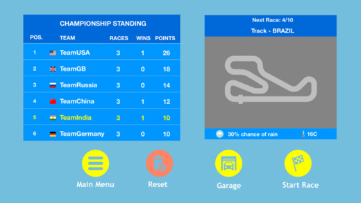 Mini Racer is an intense top down racing game. To win the race just pure driving skills is not enough, you need to be a thinking driver and plan your race well. The game has following features: - 10 challenging tracks with various track characteristics. Some are bendy, some has long straights, some tracks are narrow and some are wide. Each track will pose different challenges to you. - As you race your tyre will degrade so you need to take pit stops and get fresh tyres to stay in the game. You can time your pit stops strategically to get a jump on your rivals. - The race has an active weather which can have an impact on the result of the race. If it rains, you need to put on wet tyres to get better performance out of your car. - Based on your race standing you get upgrade points to upgrade your cars performance. Go out there and see if you can become the champion. Good luck