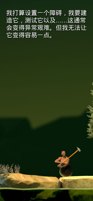 我做的这个游戏, 是为了某种特定类型的人 为了伤害他们。 • 只用一把锤子和一个锅攀越高山。 • 像我对手头的问题进行哲学观察一样倾听。 • 这段痛苦的游戏至少要两个小时及以上的时间才能完成。我们的测试者结束游戏的中位时间是5小时,但平均值接近于正无穷。 • 一次次地退后。 • 体会你曾不知道能承受的新型挫折。