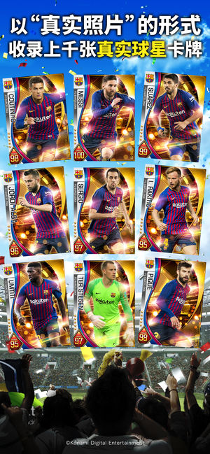 ●以真实球员照片的形式 收集世界知名球星卡牌! 阿根廷国家队、巴西国家队、葡萄牙国家队等争夺世界王者的国家队劲旅自不待说,也有收录FC BARCELONA、LIVERPOOL FC、ARSENAL FC等著名球队明星球员的真实照片卡牌。快来收集球星,不断强化,组成个人专属的最强球队吧。 ●比赛中可用贴图来对话! 收集球星组成阵型后,比赛操作由计算机控制。比赛中,您可以使用原创贴图和对手进行沟通,表达喜怒哀乐。 ●享受11人的实时协力战! 若想试试自己球队的实力,最佳的方法就是与劲敌对垒。《实况:王者集结》可让您与对手随时随地进行实时对战,既能透过「排名赛」挑战未知的强敌,亦能与好友进行「友…