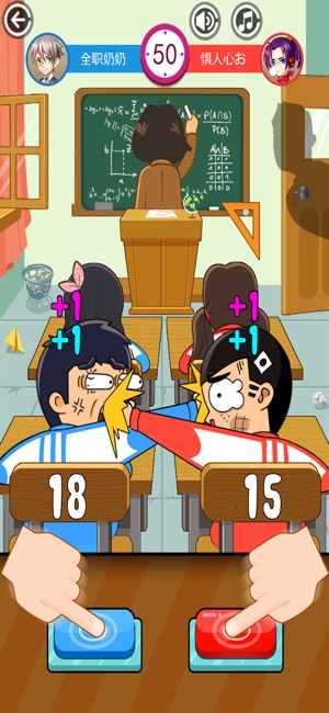 《同桌大作战》是一款代入感超强的双人实时对抗(PK)小游戏。 两名玩家将同时扮演对方的“亲密”同桌,并在紧锣密鼓的教学中,进行一场关乎尊严的手速之战。 整个对抗过程中,玩家不仅要竭尽全力地爆发手速,更要时刻小心老师的回眸,与班主任的凝视。 是在安全的范围细水长流,还是在危险的边缘疯狂试探,都将有玩家自己决定。 更重要的是,在这个简洁明了却又包罗万象的玩法下,玩家还将重温到“123木头人”、“打手心”、“击鼓传花”等经典游戏的情怀魅力~ 现在就回归到激情燃烧的青葱岁月,来一场紧张刺激的手速对决吧~