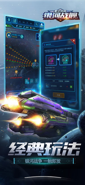 银河战舰-星空帝国,超刺激的星际策略SLG手游! 未来,人类开始了在宇宙的无边探索。宇宙星球之间,资源、领土的分布不均,争端不断,宇宙战争一触即发。 游戏玩家作为星球的总指挥,对内统治自己的家园,发展星球内科技力量和军事力量,研究新型战舰,组成强大的舰队,抵抗入侵者的猛攻。同时需要和其他星球结盟,组成最强战队,一起成为宇宙霸主! 顶级美术团队巅峰之作,绚丽真实的视觉效果,精致多样的模型,为你呈现一场完美的宇宙大战! 游戏特色: =无垠宇宙,广阔地图= ·超多星际秘密等着你去发掘和挑战! =经典重现,星际大战= ·宇宙战争,一触即发,一起成为最强霸主! =战舰系统,极致呈现= ·打造多种无敌…