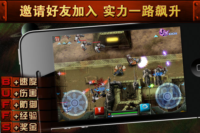 Glu新浪官方微博:http://weibo.com/glumobile 《枪火兄弟连》是Glu重磅打造的免费中文3D射击游戏大作.游戏新增超给力的多人联网作战功能和实时互动的强大语音聊天功能!游戏战斗场景火爆,操作简捷,拥有极具挑战的僵尸星球和GameCenter挑选给力好友与你并肩作战的强大互动功能!成为英勇无畏的战士,驰骋浩瀚星空,不做T.O.O.L的帮凶,只为正义而战! 游戏内包含了40余款不同类型的武器:猎枪、加特林机枪、格林机关枪甚至激光加农炮等;百余款属性各异,外观精美的装备任您选择;另有强大的成就系统在等待你的探索 Glu专注于为您提供更优、更强的免费游戏.请随时留意您的游戏是…