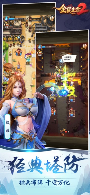 《全民主公2》是一款以三国世界观为背景的手游,是手游《全民主公1》的正统续作,游戏以风起云涌、英雄聚会的三国时代为背景,致力于还原三国宏大史诗战争场面。玩家可将三国名将招募麾下,自由个性养成,组建百变阵容,体验丰富趣味的各类玩法。 ---游戏特色--- 1、经典塔防 排兵布阵 千变万化 游戏传承首作《全民主公1》塔防与卡牌为一体的特点,以经典塔防战斗还原三国时代宏大的战场,以丰富的NPC还原三国时期千变万化的战争局势。玩家需要根据多变的关卡挑选合适的上阵武将,并通过合理布阵通过关卡,体验三国时期千变万化的战场局势。 2、酷炫卡牌 传奇武将 完美诠释 三国时代可谓中国历史上最辉煌的一页,短…