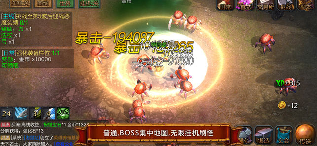 简介:超长离线挂机100%收益,独特天赋系统, 多职业多选择,力、敏、智三系换着玩 最牛离线挂机,一天只玩两小时 最短日常任务,完成只要10分钟 独特天赋系统,能抗能打 手动副本太麻烦?一键扫荡轻松愉快 上百种技能任意搭配 四大职业:战士,弓箭手,魔法师,召唤师 离线:离线与在线同等100%收益(每天上线半小时其它时间全程挂机) 技能:职业专属技能,主动,普攻,宠物等上百种特色技能随意搭配 装备,宝石模仿魔兽世界暗黑系统,"成长装备""套装""传说装备"等 天赋:超高属性天赋,更可解锁更多独特的职业技能! 副本:所有副本无尽层数,无尽挑战 --------------------开发者的话-…