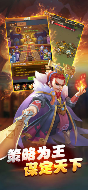 【游戏背景】 梦回三国,这是个能人辈出的时代。 诸葛亮抚琴唱响空城计,吕布弯弓一箭中戟,关羽温酒斩华雄于马下。 彼时清醒,也有诸多憾事另人唏嘘不已。 关羽大意丢荆州,曹操惨败于赤壁,“世之奇士“郭奉先英年早逝。 现在,给你一次机会回到三国时代,从一兵一卒开始,你能走多远? 【游戏简介】 你将扮演一位白手起家的主公,带着你的第一位武将周泰和屈指可数的士兵,从荆州-桂阳这个地方开始,一步步开启你的天下征战之路! 击败流寇帮助你建立自己的威望,对城池进行征收可以获得更多的资源。利用你的个人魅力将更多三国名将收于麾下,只要你有足够的能力(或者财富),吕布、关羽、貂蝉都将成为你的左膀右臂! 不…