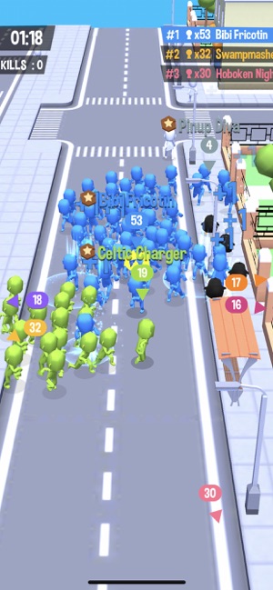 在城市中召集最大阵容! 城市游走圈粉,收集散落人群,同化其他小团体,组成超强阵容!