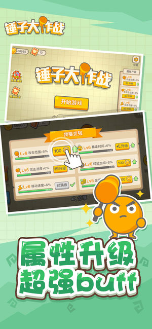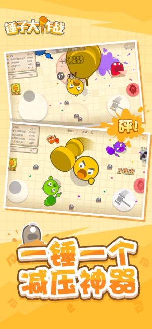 这是一款超好玩,超爽快,超有挑战性的休闲解压游戏! 拿起你手里的锤子,化身成圆圆的小果冻,锤爆敌人,成为全场最强就是你的目标。一锤一个不要犹豫~ 在这场刺激感十足的战斗中,忘掉顾虑,甩掉负担,尽情锤起来吧! 游戏玩法: 1.操作摇杆,控制英雄风骚走位。 2.挥动你的锤子,吃豆豆,锤地鼠,干掉其他玩家,升级进化获得更大的锤子。 3.暴走技能加Buff,狂暴疾走,一锤一大片。 游戏特色: 【爽快击杀】 一锤到底,锤锤到肉,炫酷无比的特效,爽快的打击感,随时随地让敌人灰飞烟灭。 【休闲解压】 996压力太大?作业太多写不完?锤就完事了! 是时候放下顾虑,放下忧愁,来一局锤子大作战,立刻缓解…