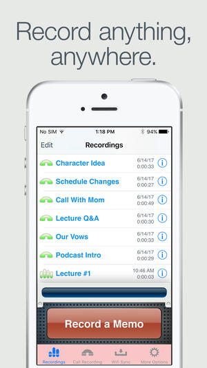 The original voice and call recorder for iOS. Recorder is your one-button audio recording solution. Record memos, discussions, interviews, and ideas on your iPhone. Use it as a voice recorder or a sound recorder. Record for seconds or hours. With an extremely simple interface, Recorder is the best…