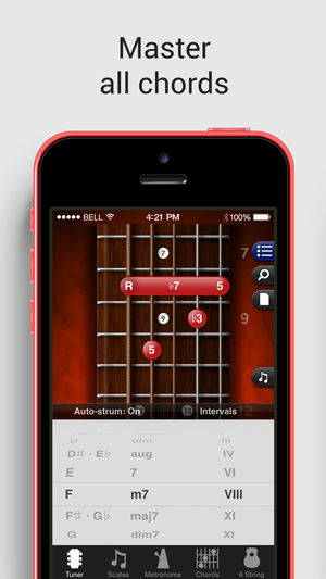 减轻琴包!吉他练习工具包含基本吉他工具 — 调音器、节拍器、和弦、音阶和琶音 – 和您的 iPhone、iPad 和 iPod touch 天衣无缝。 特点 ■ 支持您的所有乐器!6 弦、7 弦及 12 弦吉他,4 弦、5 弦和 6 弦贝斯、班卓琴、曼陀林和夏威夷四弦琴,都带有标准和另类音调。 ■ 调音器、和弦、音阶和琶音自动调整适用于选定的乐器和音调。 ■ 一流的半音调音器,每一个音都和专用硬件调音器一样精确,但灵活性却要大得多! ■ 海量乐库,有 2,000,000 多种和弦、音阶和琶音。弹拨和弦并轻击音符聆听这些声音。 ■ 精密的节拍器可在使用吉他练习工具的其他功能或其他应…
