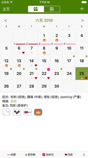 经期跟踪器,跟踪女性经期的最简易方法! 经期跟踪器简单小巧。 * 在每月月经开始时按下按钮。经期跟踪器将记录经期日期,并根据最近 3 个月的月经周期计算平均值,从而预测您下次月经的开始日期。 * 使用简单明了的每月日历视图,查看您当月或未来的经期日期、排卵日和受孕时间以及您的情绪和症状信息。 * 使用外形美观的图标装饰您的 iPhone,该图标会显示在主页屏幕上,因此请谨慎选择。它仅显示为 "P Tracker"。 经期跟踪器具有多种功能。 * 记录经期每天的情绪和症状 * 可将您的经期日期和备注通过电子邮件导出以进行备份或供就医时使用。 * 查看到下次月经前的天数或推迟的天数。 *…