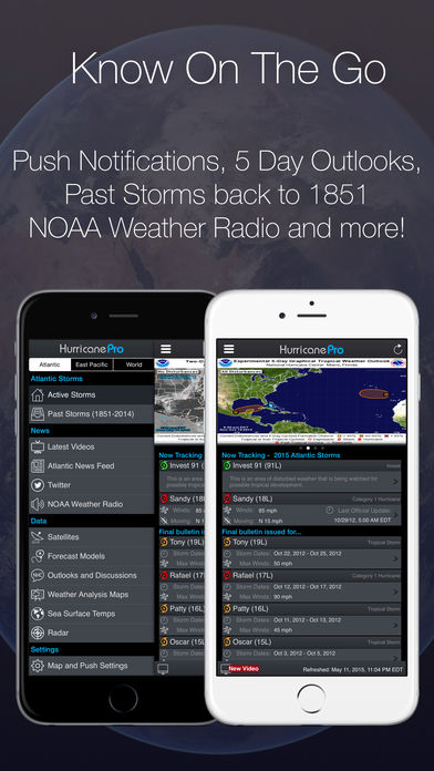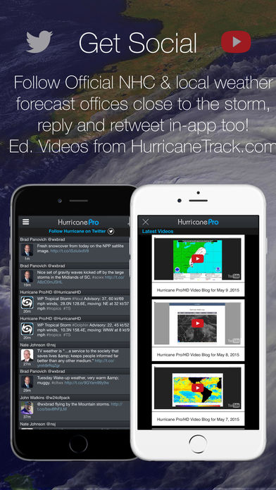 Hurricane Pro: The best Hurricane tracker app for the iPhone and iPod Touch! As the first hurricane tracker to be released back in 2008, Hurricane Pro has been keeping people like you safe for over 9 years. Continuously updated with interactive features and detail; no other hurricane tracking app comes close to the information provided inside Hurricane Pro! Reviewed by CNN as having the best features of the Hurricane Tracker apps available for iPhone GOOGLE: cnn top hurricane app to read the article! • Featured by: CNN Tech • TUAW • MacWorld • The Huffington Post • ZDNet • The New York Times • • TWC's Stephanie Abrams: The only app I use for 'canes...y'all have a great one...so user friendly and lots of great satellites/discussions/history/etc!!! Thanks for making it!:) -SA • Chief Meteorologist Brad Panovich from WCNC: I don't always recommend apps, but when I do, I recommend @HurricaneHD for tropical tracking... • Depended on and recommended by emergency managers and first responders • Featured in iTunes Rewind two years running • Video Updates • Extremely detailed video updates provided by an exclusive partnership with the experts at HurricaneTrack.com. HurricaneTrack.com gets in front of the storm and broadcasts back video and information from the front lines. They also provide our weekly video outlook. • Twitter Feed • All the latest news and updates through Twitter integration. Full detail tracking map, not just a web page like other apps. Includes forecast cone, wind radius and extremely FAST PUSH notifications to keep you informed. Hurricane has all the detailed information you need. The clear leader in Hurricane Tracking on iOS devices and the one and only app you need to stay up to date. • Over 50 animated SATELLITE images and NOAA RADAR • Bulletins constantly updated from the National Hurricane Center • Detailed interactive tracking map • Detailed tropical wave/invest information • Video updates both before, during and after the storm • Push Notifications • Share information with friends/family via email, SMS, Facebook & Twitter • Historic storm data - Atlantic back to 1851 » East & Central Pacific back to 1949 • Model runs including: • Wind Shear • Vorticity - 4 models • Environmental Steering - 6 models • Convergence • Divergence • Link to the FSU model runs. • Preparedness Tips, Storm FAQs and MUCH More! Informacion en Español para el Atlantico Norte, el Mar Caribe y el Golfo de Mexico... - - - - - - - - - - - - - - - - - - - - - - - - - - - - - - - - - - - - - - - - - - - - - - • La perspectiva de actividad ciclonica, advertencias, y una explicacion del pronostico praparada para usted, cortesia de la oficina meteorologica de San Juan Puerto Rico. This application is great for: - - - - - - - - - - - - - - - • anyone interested in severe weather or meteorology and studying tropical system history • learning more about historical hurricanes like Camille, Hugo, Andrew, Katrina and Sandy, just to name a few. Love Hurricane Pro™? Get Hurricane HD™ for your iPad today! IMPORTANT: - - - - - - - ⓘ All official hurricane data originates from the NHC. Hurricane reports the data as it becomes available, however is not guaranteed. ALWAYS execute personal responsibility - watch local media outlets when threatened by a storm! ⓘ Internet Connection required to receive new plots and view new satellite pages and text bulletins. ⓘ We cannot guarantee that our product is the right one for you, as no single application is perfect for everyone. Our goal however, is to create the best, most informative hurricane tracking application possible.
