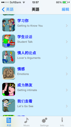 • 英语,法语,德语,意大利语,西班牙语,日语,泰国语,短语,翻译 • 超過 45 種類別,包含 6 個旅遊章節,戀愛和失戀、爭辯、閒聊及其他許多內容。 • 具音訊的片語總共超過 2,500 個。 • 清晰的真人發音 • 大幅改良的搜尋/篩選效能 • 可新增您自己的主題 • 可新增、編輯、刪除您自己的片語 • 不含錄音音訊的片語則運用文字轉語音技術 • 為任何現有的片語、或您所新增或編輯的片語錄製音訊 • 不必離開應用程式即可聆聽並控制您的音樂 • 記憶模式可讓您在從事慢跑、健身、工作、閱讀等其他活動時記憶片語 • 使用記憶模式時,可聆聽背景音樂,讓記憶過程變成愉快的經驗 • 建立相片和…