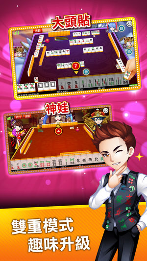 【玩家评鉴五颗星,台港澳No.1在线麻将麻雀游戏品牌】 全球3,200万真实玩家,牌咖最多,3秒就凑桌! 正宗台湾16张麻将、广东麻将(广东麻雀、新章)、跑马仔,免注册立刻玩!想上桌,口袋就有麻将桌! .免费游戏:立刻下载可得1200神币(限新注册),三缺一也不怕 .麻将All in One:台湾、广东麻将任你玩 .独创神娃系统:打造你的专属麻将角色 .多种游玩模式:华丽神娃模式、清晰大头贴模式,任你选择 .赠币超多:每天登入玩麻将游戏领金箱,免钱玩到爽 .首创自选底台、秒数麻将局:打牌也可以很Freestyle .全新好友桌:亲朋好友摸一圈,打牌免惊找无咖 .独家娱乐城:21点、骰宝、生肖机…