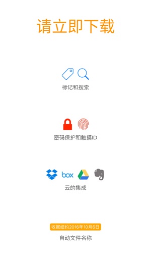 * 原装(并且仍然是最佳)iPhone 和 iPad 扫描程序 * 深受 150 多个国家的数百万人所信赖 * 获纽约时报、TechCrunch 和 MacWorld UK 推荐 使用 JOTNOT 替代纸张 JotNot 是 App Store 中最先进的扫描程序。 该程序会自动检测边缘并处理图像,去除阴影、校正对比度并调整白平衡。 扫描速度快,扫描结果清晰,适合打印。 随时随地,随心扫描 * 将笔记、收据、草图、乐谱、食谱、合同、名片甚至照片转换为数字副本 * 将扫描结果另存为 PDF 或 JPEG * 有效扫描多页文档 共享您的扫描成果 * 通过电子邮件、iCloud、Everno…