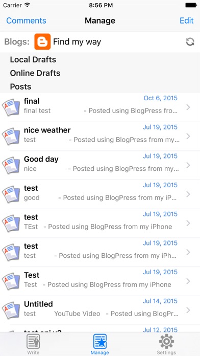 ON SALE NOW!!! $2.99 original $4.99!!! *** BlogPress support iPhone 5 Now! *** * In battle of mobile blogging tools, BlogPress wins on several fronts -- MacWorld.com * if one is looking for a powerful video blogging app, then BlogPress is definitely the app for you. -- BlogHerald.com * BlogPress – A mobile bloggin’ dream -- TapCritic.com * Video demo: http://goo.gl/lu5m BlogPress is an easy blogging app for both iPhone/iPod Touch and iPad and it is highly intergraded with your favorite social networks: Facebook, Twitter, YouTube, Flickr and Picasa!! We know blogging. You may want to share your idea, your daily life or the important moment with people who are important to you. BlogPress is an app for that. Text, photos and videos, Facebook and Twitter sharing, comments and reply, location sharing, labels/tags and categories ... BlogPress has everything you need for blogging. BlogPress is simple, easy to use, and come with rich features: - Universal app optimized both for iPhone/iPod touch and iPad, now it is also read for iPhone 5 - Text-image-mixed layout editor - Easy photo and video uploader, fully intergraded with Filckr, Picasa Web Album and YouTube - Tags/labels and categories supporting - GEO/Location tags auto detection, intergraded with Google Map - Scheduled Publish - Twitter and Facebook sharing - Simple HTML Quick Insert shortcut: Links, Bold/Italic/Font and Text color - Local and online drafts - Local Preview - Comments Management (Support Blogger and WordPress) - WordPress Pages Management - Password Protection - Landscape editing mode - Emoji icons supporting, funny icons in your post! - TextExpender supporting - Signature customization - General MetaWeblog API supporting BlogPress Support most of the mainstream blog platforms, including but not limited to: Blogger / BlogSpot, MSN Live Spaces, WordPress, Movable Type, TypePad , LiveJournal, Drupal, Joomla, Tumblr, Squarespace, My Opera ... You would love blogging again on iOS with BlogPress!! Just enjoy blogging and enjoy the sharing.
