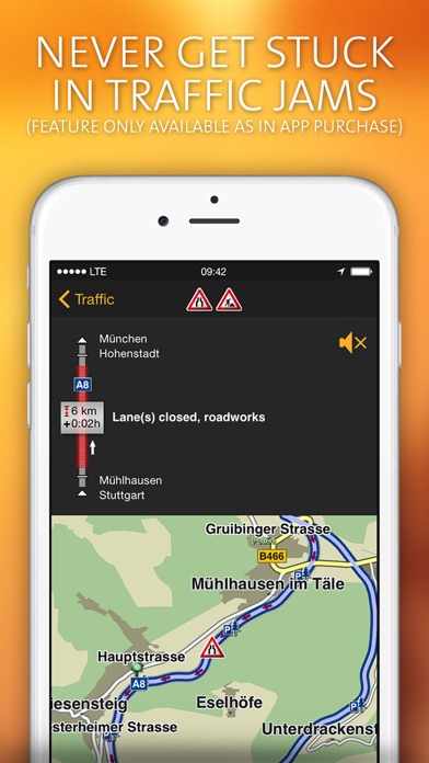 Whether on holiday, taking a weekend trip or heading off somewhere as yet unfamiliar – with NAVIGON, you can be sure of getting there quickly and safely! Transform your iPhone into a full-performance satnav system that includes onboard maps so that you can always find your way – even when no internet connection (1) is available. *** Range of functions *** - Onboard map material: only carry the road maps on your iPhone that you really need. Thus you save memory space and can navigate even when no internet connection is available. - Intelligent address entry (1): thanks to the first-class, simplified address entry, which can be operated using the keypad or via voice input, you’ll find your quicker than ever before. - Precise voice commands, including street names: just concentrate on driving the car. - The latest traffic reports (1,2): avoid annoying traffic jams automatically. - Hazard warnings (1,2): you can choose to receive alerts of danger spots such as mobile speed traps. - POI search: find your destination even without entering the address directly – locally, community-based or using Augmented Reality. - Real signage and road sign displays: you always have an overview thanks to photo-realistic views of junctions and road signs. - Dynamic lane assistant: at junctions where the exit is unclear or on motorway exits, be guided into the right lane every time. - Speed assistant: NAVIGON warns you visually or audibly if you are exceeding the posted speed limit. - Optimal route: choose the right option for you, from up to three suggested routes. - Route planning: plan longer trips with multiple destinations en route. - Expanded pedestrian navigation: navigate to your destination on foot as well – or use Urban Guidance (1,2) if you also want to include public transport. - Many other in-app purchases possible: 3D maps showing mountains and valleys, Cockpit and much more. *** Maps *** - Latest Map Guarantee for the latest HERE maps (3), with the following coverage: AL, AN, AT, BA, BE, BG, BY, CH, CZ, DE, DK, EE, EL, ES, FI, FR, GI, HR, HU, IE, IT, LI, LT, LU, LV, ME, MT, NL, NO, PO, PT, RO, SE, SI, RS, SK, UK, VA - NAVIGON FreshMaps XL (2): For a one-off payment, you get the latest map updates from experts up to four times a year, for two years! This ensures that your app is always up-to-date, containing the latest changes of the road network and many new points of interest. *** Please note the following *** The correct positioning of your iPhone in the vehicle is very important for optimum GPS reception. Continuous use of GPS can shorten battery life. Please also note our FAQ section at www.navigon.com. Due to the high data volume of the maps, we recommend using WiFi for the initial installation. NAVIGON wishes you a lot of fun from your navigation – whether in the car, on a bike or on foot! 1) To be able to provide you with the latest reports at all times, some functions require an internet connection (e.g. traffic reports or speed camera alerts). However, the navigation system itself, including address search, speed display, driving lane assistant and much more, does not require the internet. 2) Available as an additional in-app purchase. 3) You get the most up-to-date maps at the time you purchase the app