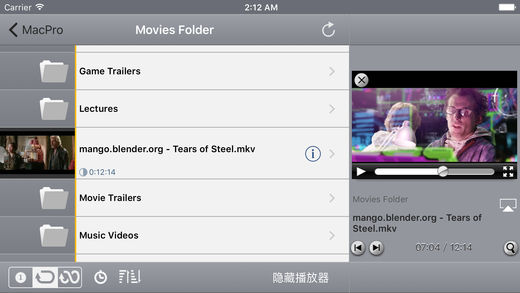 使用安装在 iPhone、iPod Touch 或 iPad 上的 StreamToMe,播放通过 WiFi 或 3G 从 Mac 或 Windows PC 上串流的*视频*、*音乐*和*照片*文件。无需事先转换或同步(支持大量格式,无需转换),仅需轻击文件即可播放。使用 TV 输出线缆(iPhone4+) 或 Apple TV,StreamToMe 可通过 TV 进行播放,将 iPhone/iPod/iPad 及 Mac/PC 中的所有文件转换为家庭媒体中心。 还需要在 Intel Mac(OS X 10.6 或更高版本)或运行 XP SP2、Vista 或 Windows 系统的Pentium4 或更高版本 PC 上运行免费的*ServeToMe*程序。推荐使用A 1.8Ghz 双核或速度更快的处理器。 ServeToMe 是一款免费程序,StreamToMe 用户可从 http://zqueue.com/servetome 免费下载。 ** 功能 ** - 支持大量格式的文件,无需事先转换 - 可在 iPad 和 iPhone 上进行高达 1080p 的高清画质视频回放 - 持续、单曲和随机播放模式 - 集成 iTunes 媒体库;可浏览 iTunes 文件和播放列表 - 集成 iPhoto 媒体库(仅用于 Mac) - 播放所有音乐,显示唱片集 - 通过文件夹进行播放或使用 iTunes 播放列表 - 通过 Apple Component、Composite 和 VGA 缆线从 TV 播放 (iPhone4+) - SRT 和 SSA 字幕 - iOS4.1 上背景音频 - 支持电台/电视台的音频和视频 **无需转换或同步** 查看文件前,为什么必须要将文件转换为 iPhone/iPod 大小或 iPad 格式呢?将文件同步至 iOS 设备是一件痛苦的事情。 在 Mac 或 PC 中运行的 StreamToMe 伴随程序 *ServeToMe* 可以为您排忧解难。StreamToMe 用户可从http://zqueue.com/streamtome 免费下载ServeToMe。 ServeToMe 可*即时*将文件转换为 iPhone/iPad 相容的格式,因此,仅需触摸一下 iPhone/iPad 即可在 5 秒内启动重放。 **达到高清播放画质** 可从大多数现有 Mac 和 PC 中,通过 WiFi 将达到高清播放画质 (1080p) 的影片串流至 iPhone 或 iPad。 - *影片文件*:MP4、AVI、 MOV、FLV、MPG、MKV、WMV 及其他格式 - MP3、AAC、FLAC、ALAC、 M4A 及其他格式的*音乐文件*。 - JPG、TIFF、PNG、GIF 格式的*图片文件*(不支持 RAW 文件) 可*停止和搜索*iPhone、iPod Touch 或 iPad 上的文件,好似其真的位于设备中。 **WiFi 或 3G** 可以随时随地通过 3G 将文件从 Mac/PC 串流至 iPhone/iPod/iPad。可随时随地观看影片,欣赏音乐。使用动态 DNS 地址查找计算机并*串流文件*。 **用户必备** 只要使用 iOS 6 或更高版本, 即可在 iPhone、 iPod Touch 或 iPad 上运行*StreamToMe*。 StreamToMe 要求 Mac 或 PC 与 iOS 设备持续连接。网络条件可能会影响视频画质或连接能力。 以 720p 播放影片,推荐使用2.4Ghz 双核CPU。Pentium 4 和 Atom CPU 用户应在ServeToMe 中使用低视频播放画质选项,以避免观看视频时出现停顿状况。 从外部网(3G 或非本地 WiFi)连接要求 UPnP/NAT-PMP 或连接至路由器的手动端口。可能需要进行一些配置(参考 http://zqueue.com/streamtome/support)。 StreamToMe/ServeToMe 不能回放其他受 DRM 保护的音频或视频格式。 Screenshots and App Preview include music and cover artwork by Lorenzo's Music, available at http://lorenzosmusic.com, license http://creativecommons.org/licenses/by-sa/4.0/, and screenshots from Tears of Steel by Blender Foundation at mango.blender.org, license http://creativecommons.org/licenses/by/3.0/. Screenshots and App Preview may be reused under these same terms.