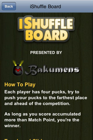 ★★★★★全新中文版上线,请在itunes上搜索I沙弧球既可 简体中文,繁体中文,让您玩的更愉快!! ★★★★★ 你在酒吧中玩過沙弧球嗎? 那你應該試試這款iShuffle-Board!! i沙弧球是有趣、有節奏感也很容易上癮,你需要靈活的手指和智慧來思考如何比賽。 這是一個桌面運動。你可以在許多酒吧看到他,現在你可以在iPhone中使用觸控式螢幕來進行比賽。 你可以和你的朋友一起在iphone上玩,也可以和電腦挑戰。 運用沙弧球的規則、策略、技巧以及運氣來戰勝對手。 並且得到趣味和娛樂性。 特點: •互動觸控式螢幕控制 •可用于單人和雙人戰模式 •優良的物理性能 •有完整的全桌面顯示,可以顯示目前比賽狀況 •完整得分表顯示 •人群反應,即時反映目前的狀態 •遊戲調節多設置