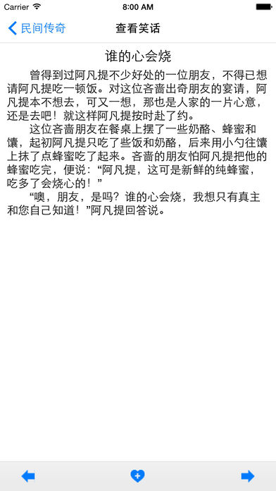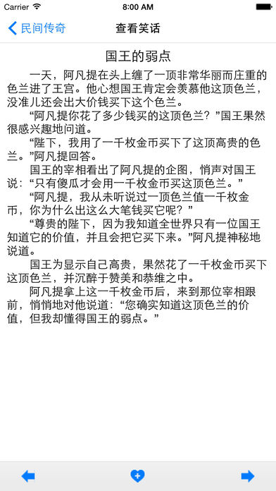人民币1元,仅限今日!!! 全面升级!笑话总数达到1万多篇,每一篇都很精彩,强烈推荐下载!$0.99买笑声和快乐,太超值了! 经过科学家的深入研究,得出看“笑话大全”有六大好处: 1.可以长寿。笑一笑十年少!看到有趣的笑话,你就会笑了,这样什么烦心事都没了,对你的心理健康中有很大好处的,你就会越活越开心,长寿那就是一定的了。 2.可以使你的性格永远开朗。如果你是一个性格内向的人,那你下载“笑话大全”看笑话吧!时间长了,你就会是一个性格开朗的人。 3.对生活永远充满热情。生活中烦心的琐事总是有的,你会有时不愉快,那你看看笑话吧!“开心一笑,烦事就会溜掉!” 4.让生活永远充满浪漫,喜欢笑的人,生活一定是开心的,浪漫的。 5.有助于拓展朋友圈,增加你的社交人群。多讲几个笑话,让周围的朋友更加深刻的记住你。 6.看“笑话大全”使您泡妞技术稳步提高。和喜欢的MM开个玩笑,讲个笑话,展现您儒雅风趣幽默的风度,使得你们的关系迅速深入发展。切忌,不能对未婚女孩,讲“爆笑夫妻”中的笑话…… 笑话大全提供了上万条中文笑话,包含古代、爱情、家庭、校园、民间、暴笑男女等多种分类,不需要联网就可以直接阅读。同时还有收藏夹功能,可以收藏自己喜欢的笑话。 如果您在使用过程中,有问题,或对软件有好的建议,欢迎与我邮件联系 giphoneapp@gmail.com 。