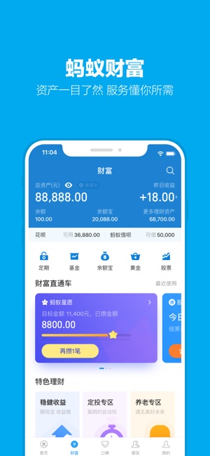 蚂蚁金服旗下的支付宝,是以每个人为中心,拥有全球超10亿用户的生活服务平台。目前,支付宝已发展成为融合了支付、生活服务、政务服务、社交、理财、保险、公益等多个场景与行业的开放性平台。 除提供便捷的支付、转账、收款等基础功能外,还能快速完成信用卡还款、充话费、缴水电煤等!通过智能语音机器人一步触达上百种生活服务,不仅能享受消费打折,跟好友建群互动,还能轻松理财,累积信用,让生活更简单! 【官方微博】@支付宝 http://weibo.com/zfbwxzf 【主要功能】 1、支持余额宝,理财收益随时查看; 2、支持各种场景关系,群聊群付更方便; 3、提供本地生活服务,买单打折尽享优惠; 4、…